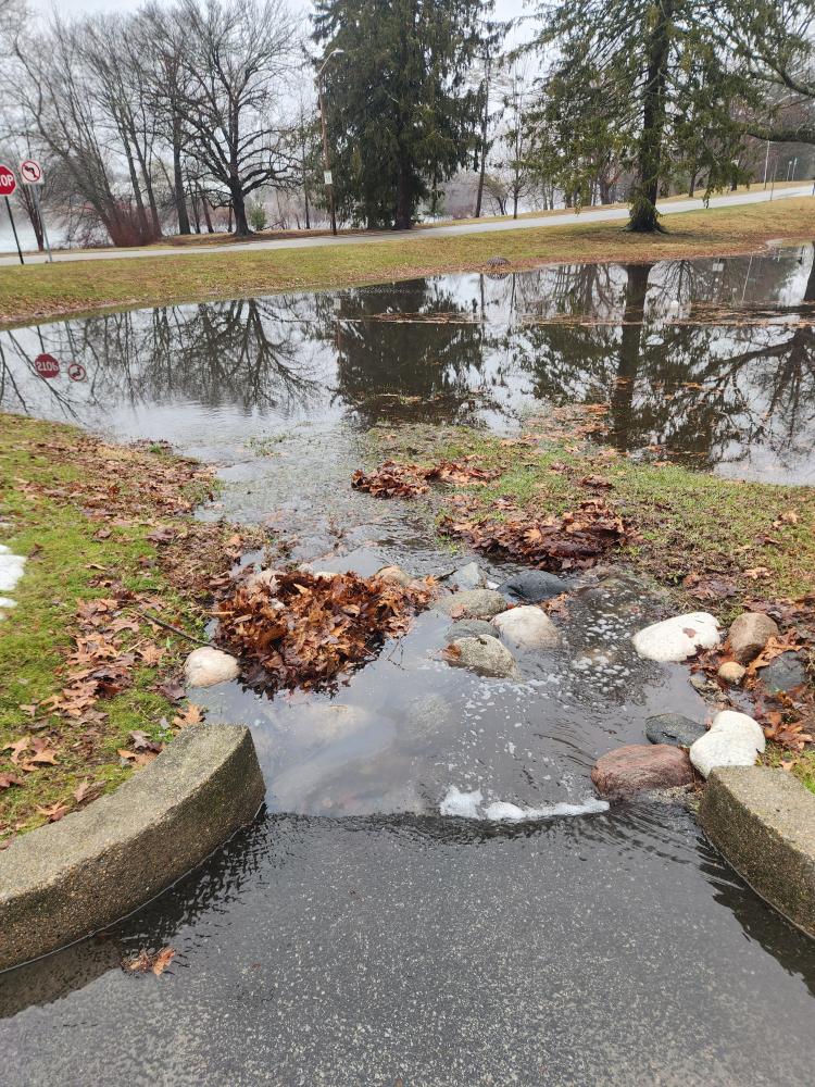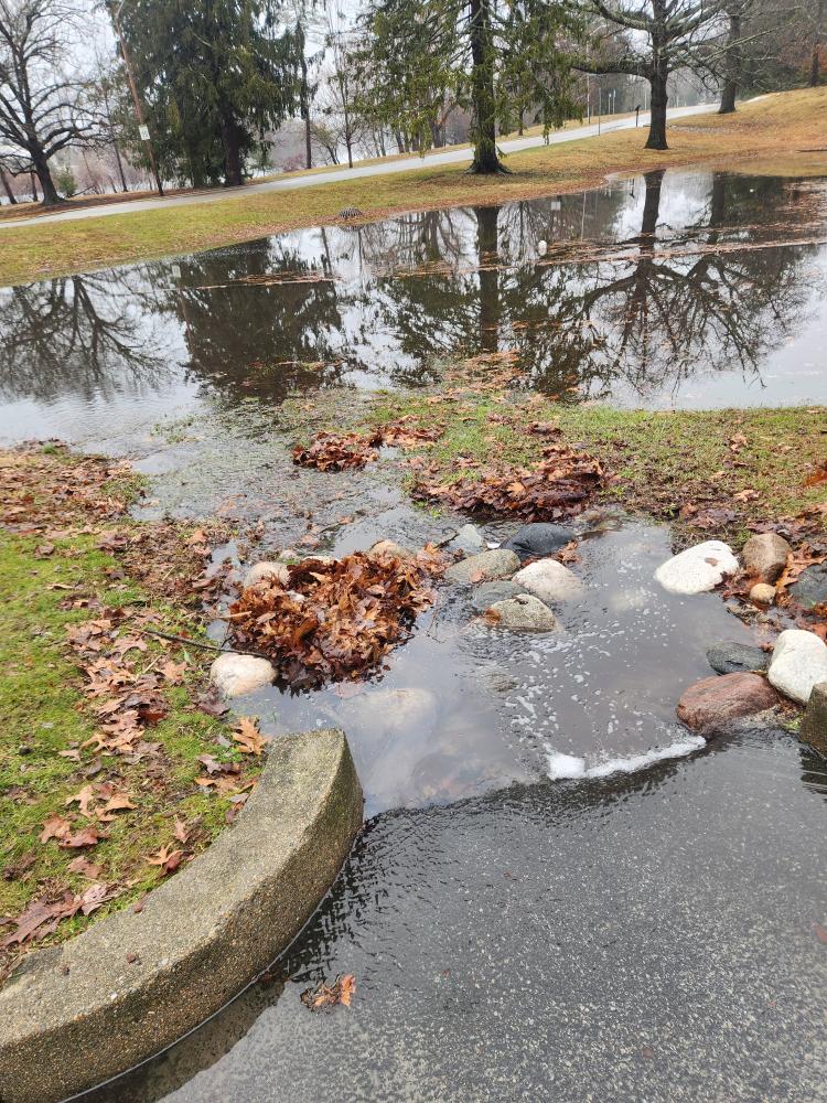 Is anything preventing water from flowing into the system (e.g., debris, trash, vegetation): Partially